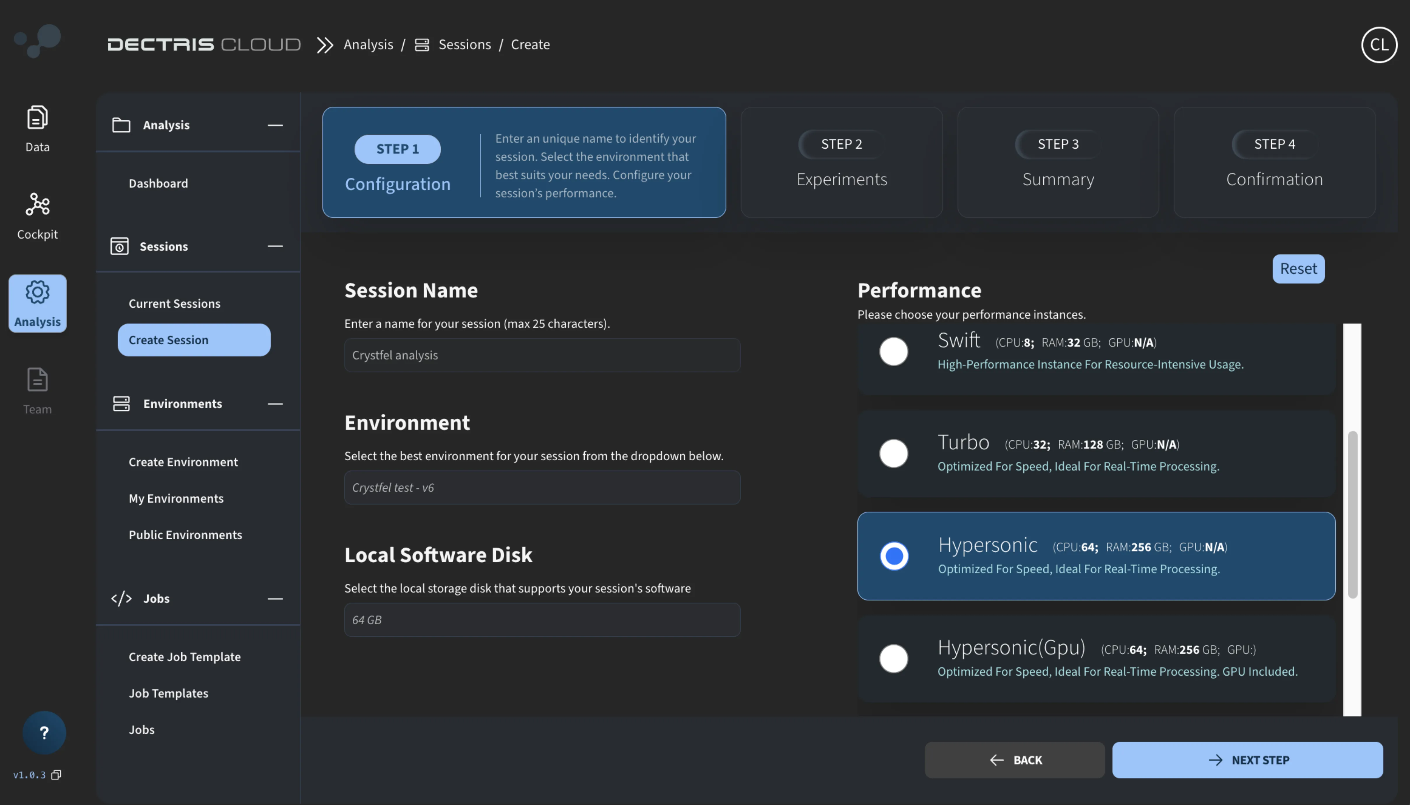 Accelerate your research with DECTRIS CLOUD's ready-to-run scientific tools, software and workflows. Quickly launch powerful, reproducible analysis pipelines using pre-configured environments, job templates, and interactive Jupyter Notebooks.