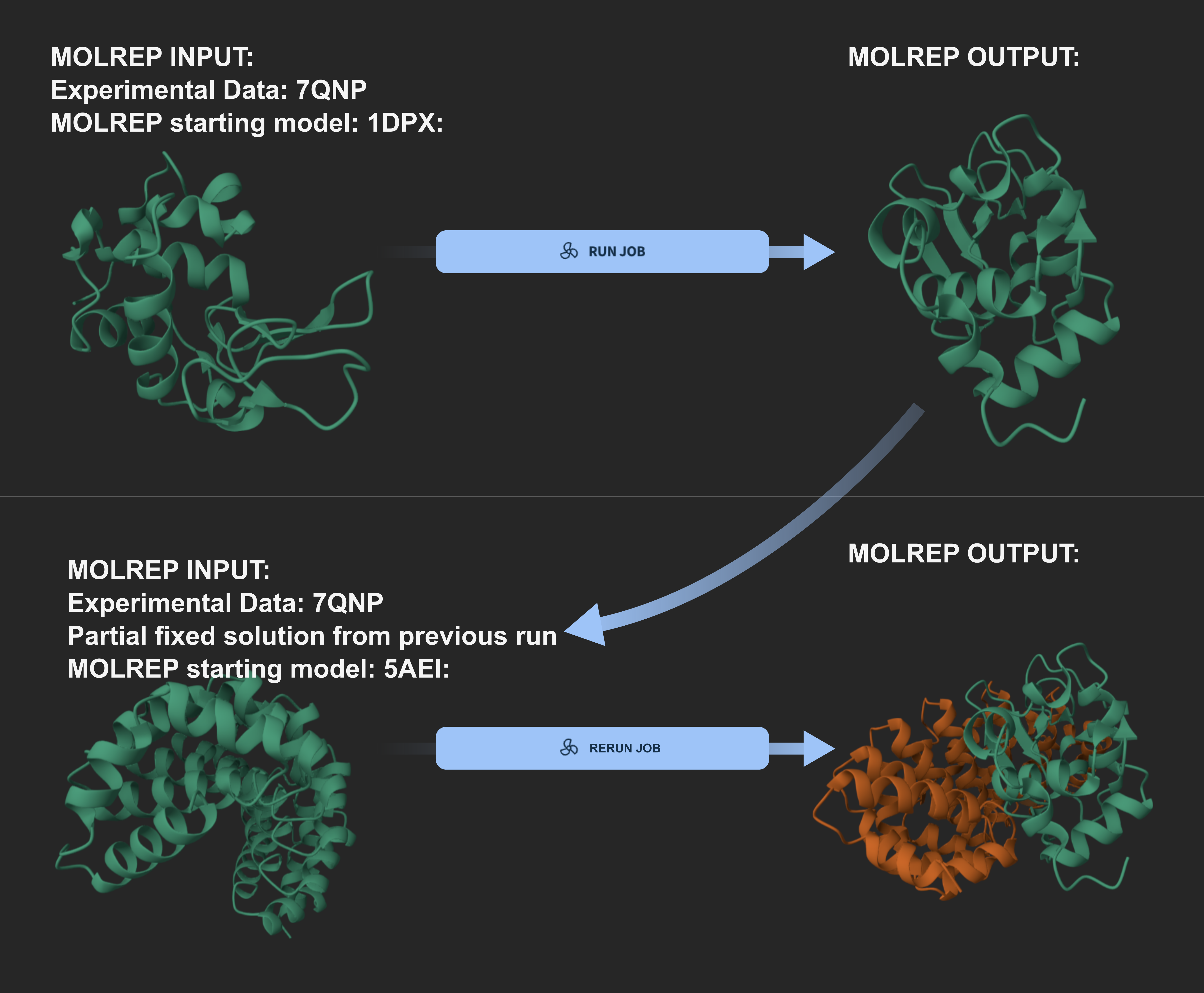 On DECTRIS CLOUD, we provide dedicated example job templates for this stage using MOLREP [8], which is a highly robust and long-standing program within the CCP4 suite.